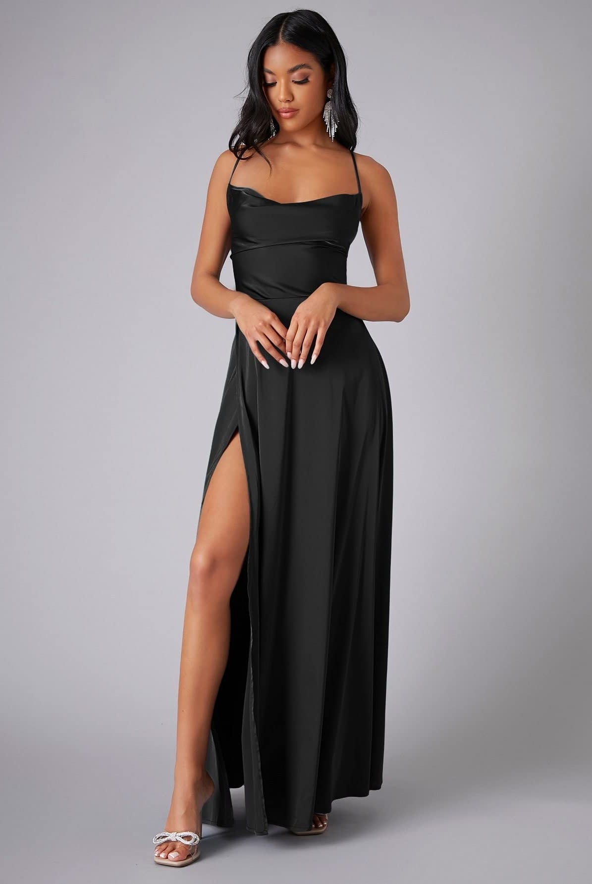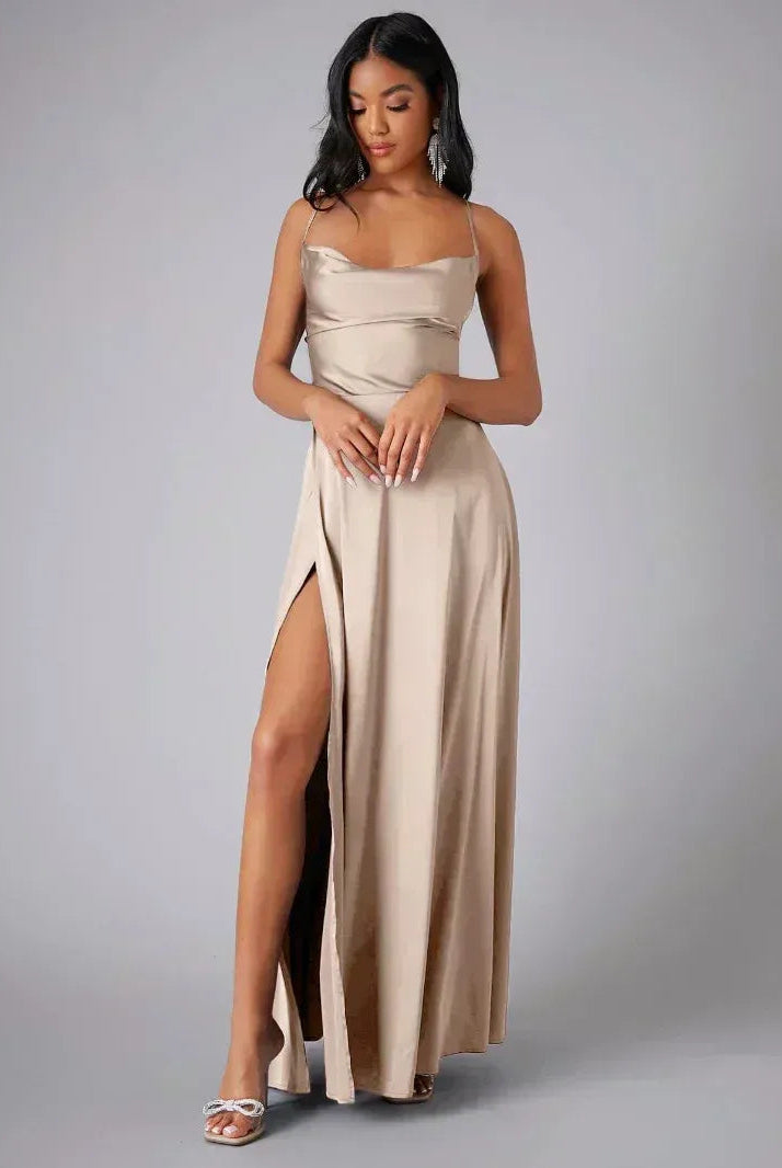 Emery | Satin Backless Slit Maxi Dress