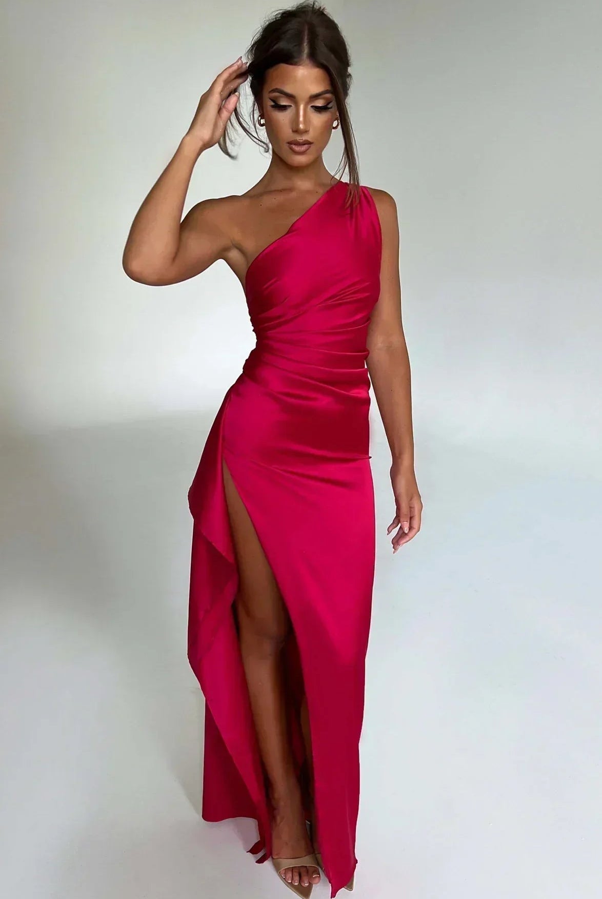 Kylie | One-Shoulder Satin Maxi Dress