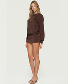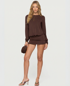 Designed for evenings and special occasions, the Noa | Backless Long Sleeve Mini Dress combines simplicity with subtle contrast. Its mini length is balanced by the long sleeves, creating a polished silhouette suitable for a variety of settings.